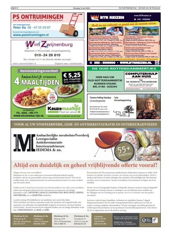 Onze advertentie in De Oud Rotterdammer dinsdag 12 juli 2022